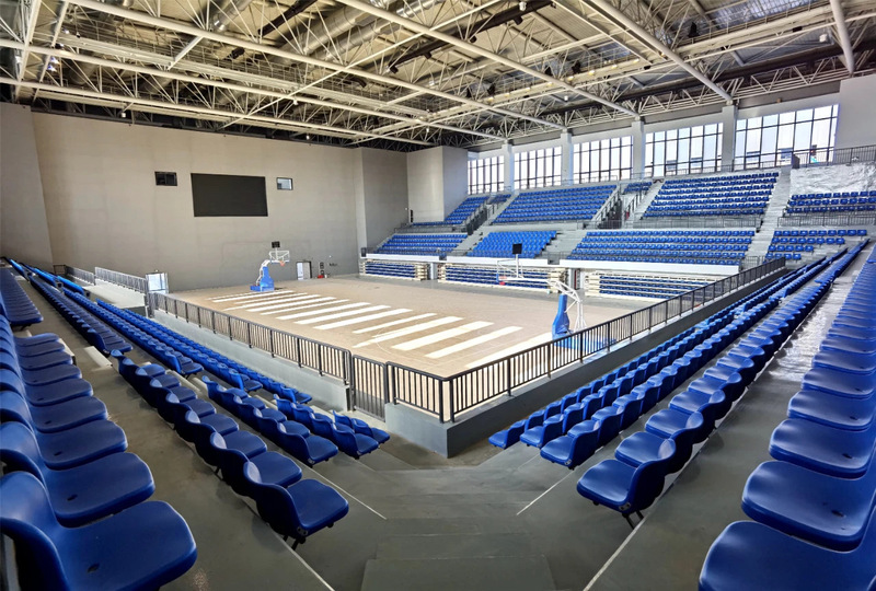 該場(chǎng)館采用了楓樺木雙龍骨的結(jié)構(gòu)系統(tǒng),該結(jié)構(gòu)系統(tǒng)在毛地板與彈性墊之間增加了一層龍骨,運(yùn)動(dòng)木地板標(biāo)高增加,加大了毛地板與地面之間的距離,使運(yùn)動(dòng)木地板底層結(jié)構(gòu)通風(fēng)性及防潮功能更佳。在上下龍骨的交點(diǎn)之間加上一個(gè)彈性墊,既保證系統(tǒng)結(jié)構(gòu)的穩(wěn)定性,避免龍骨直接接觸容易產(chǎn)生響聲,又能保證龍骨間垂直相互運(yùn)動(dòng),提供充足的彈性,提高運(yùn)動(dòng)性能。此結(jié)構(gòu)也經(jīng)常應(yīng)用在籃球、排球等專業(yè)運(yùn)動(dòng)場(chǎng)館。此外籃球館比賽場(chǎng)館設(shè)計(jì)固定座位1900個(gè),活動(dòng)座位860個(gè)在看臺(tái)下設(shè)置配套用房,平時(shí)學(xué)生上課由一層進(jìn)入比賽期間觀眾由二層平臺(tái)進(jìn)入看臺(tái)。無論是舉辦活動(dòng),還是賽事準(zhǔn)備都能夠有條不紊地進(jìn)行。從2020年起已經(jīng)舉辦過“聚鑫·志道杯” 籃球賽已三屆有余,為師生提供了豐富了的課余文化生活,不僅讓學(xué)們感受到了籃球運(yùn)動(dòng)的獨(dú)特魅力,更增進(jìn)了交流,拉近師生之間的距離。