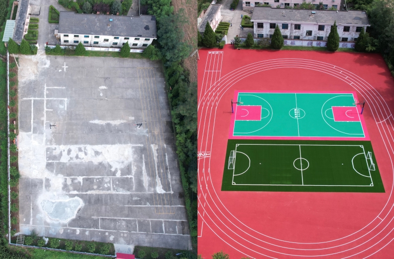 柳林小學(xué)操場(chǎng)建設(shè)前后對(duì)比圖