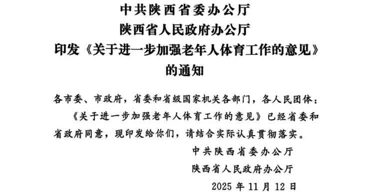 圖:陜西省出臺的《關于進一步加強老年人體育工作的意見》